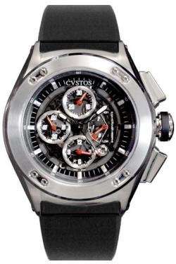 The sleek, sophisticated Cvstos Men's Challenge Round Chronograph Steel Watch is an elegant addition to any wardrobe. Featuring a beautiful 51 millimeter stainless steel case, a stainless steel bezel, and a sleek rubber band with fold-over clasp, this masculine dress watch utilizes precise, automatic movement. Three chronograph sub-dials, a reserve power meter, a convenient date window, stick indices for easy reference, and a dial that shows off the timepiece's elaborate inner workings provide spectacular functionality and a wealth of fashion appeal. The protection of a scratch-resistant sapphire crystal and water r to 330 help ensure that you'll be wearing this watch on special occasions for years to come.